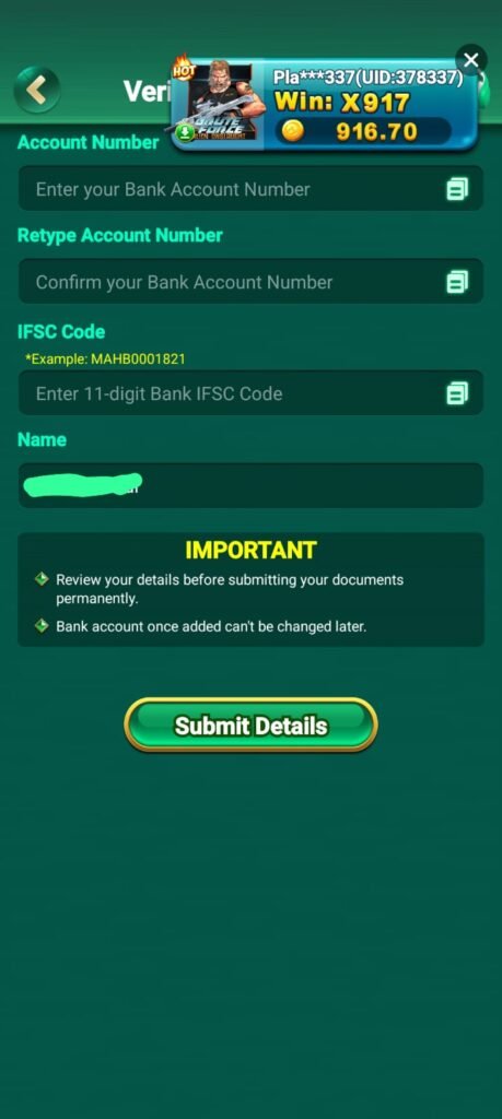 Bus itne hi documents chahiye honge aap sabhi k pass ye sab documents toh aaj kal sabhi paas hote hi hai sare documents no. Sahi se daal kar mila le ab jab aap sabhi ka account add ho jaye ga toh us par click kar k sidhe aap apne account me paise withdrawal kar payenge jo ki aap sidhe apne phone pay , g pay , pay tm jaise app se sidha use kar payenge.
